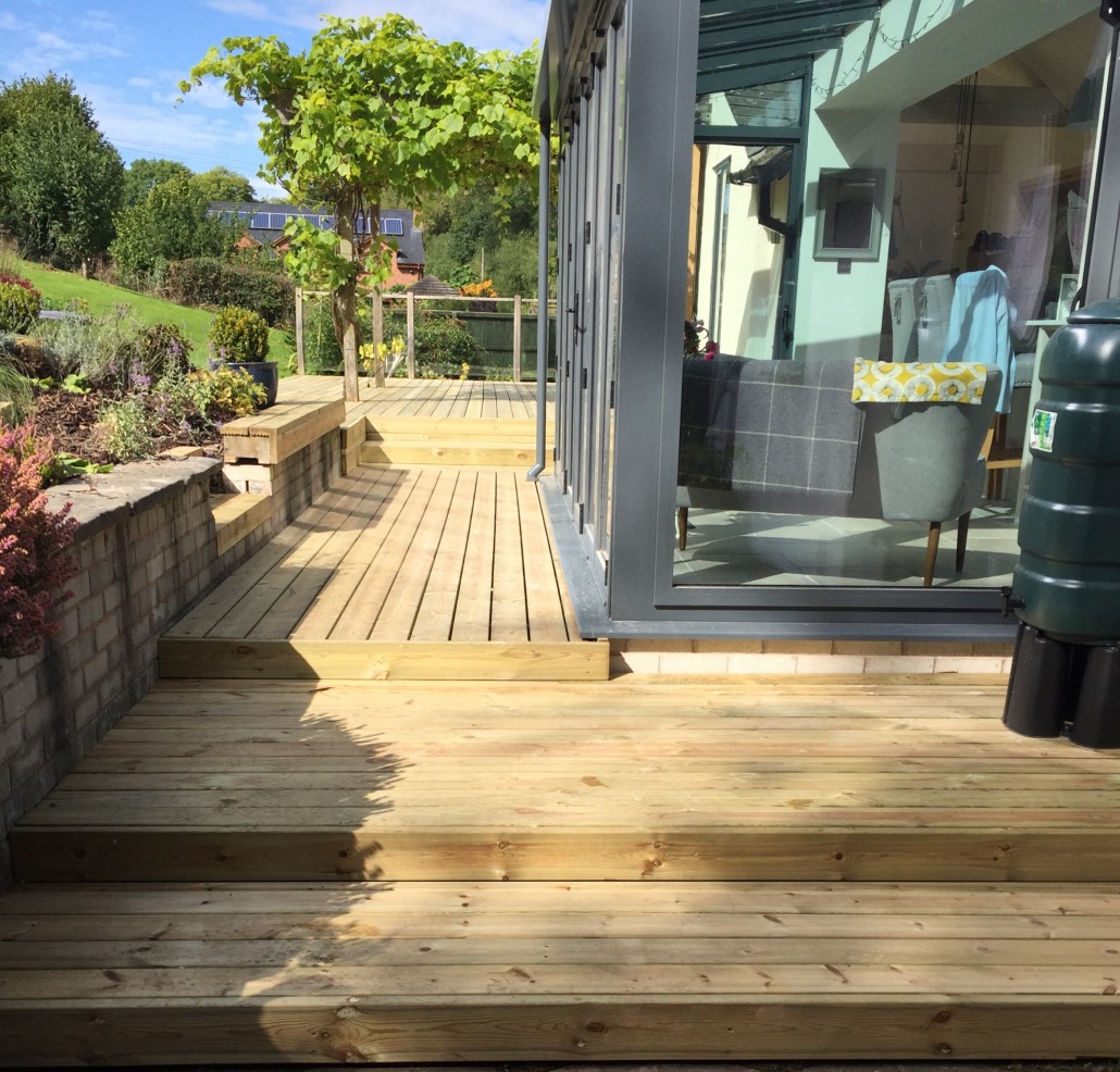 » Pressure treated decking and fencing supplied and built as part of your garden redesign or following other previous, essential works ie an old hedge removal etc.
